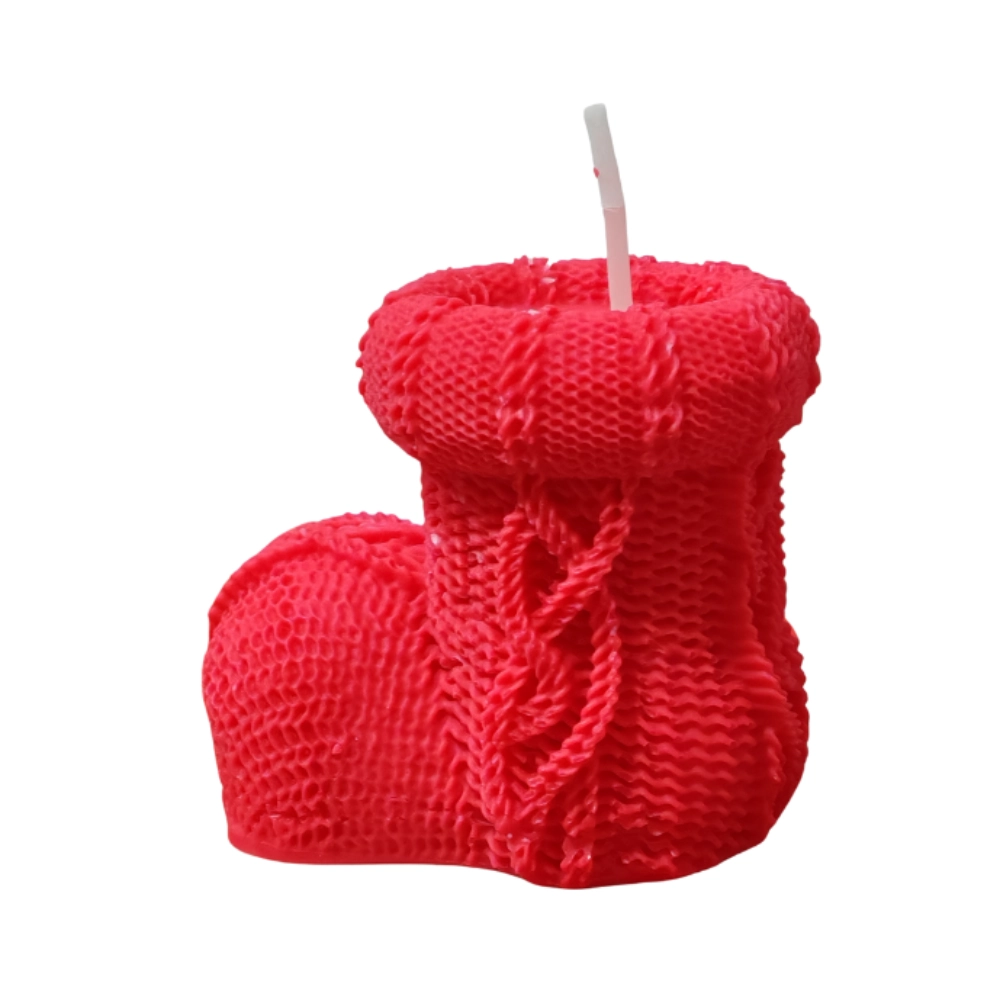 Vela decorativa con forma de calcetín navideño, elaborada con cera de soja 100% natural. Elaboración artesanal. Personalizable en color y aroma. Ideal para chimeneas, centros de mesa y rincones de invierno.